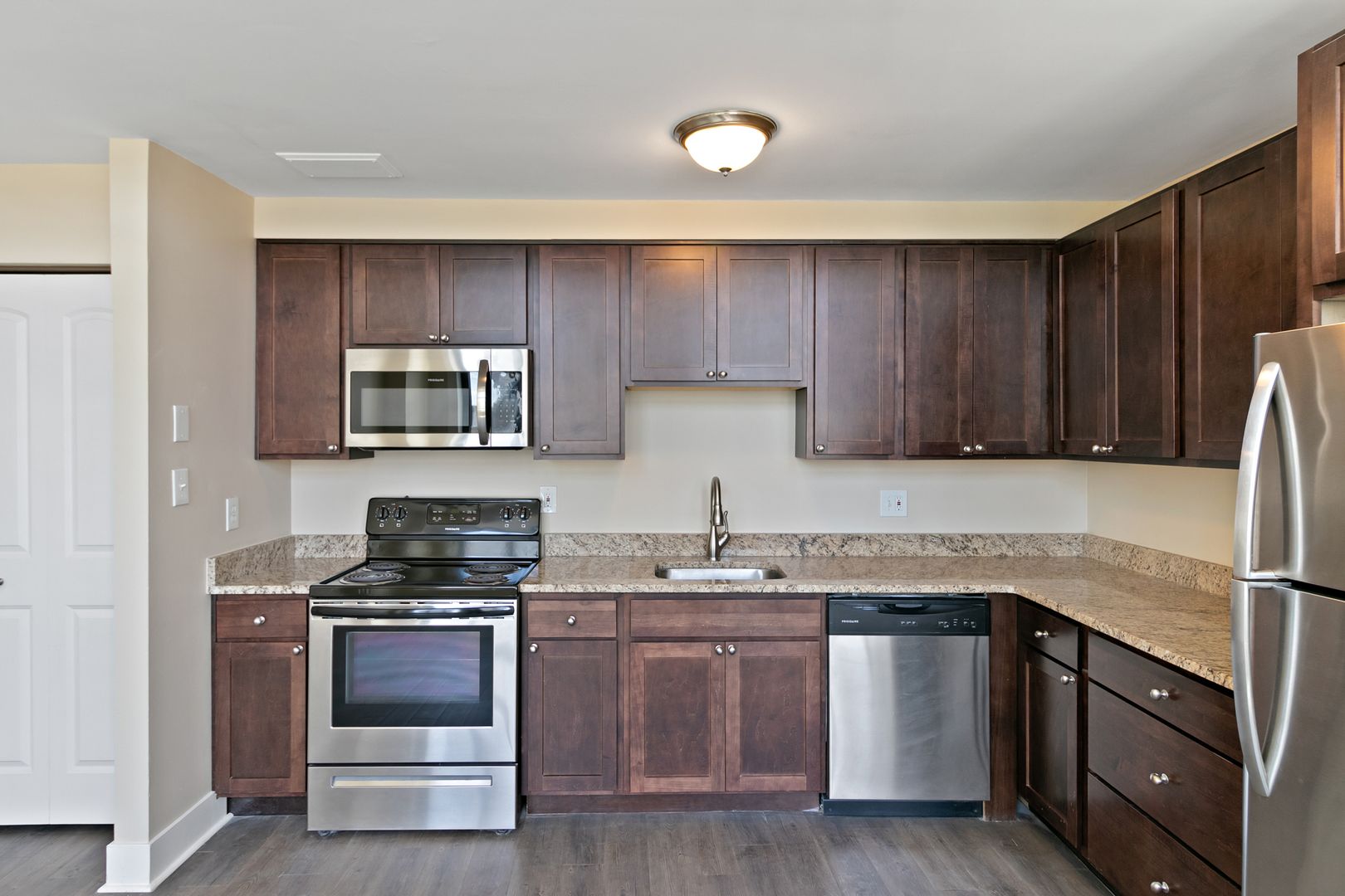 Our Two Bedroom, One Bathroom Apartment Homes offer thoughtful floor plans and a central location. Thoughtfully appointed with granite counter tops, stainless steel appliances, goose-neck pull-out faucets, high ceilings* and designer plank flooring.