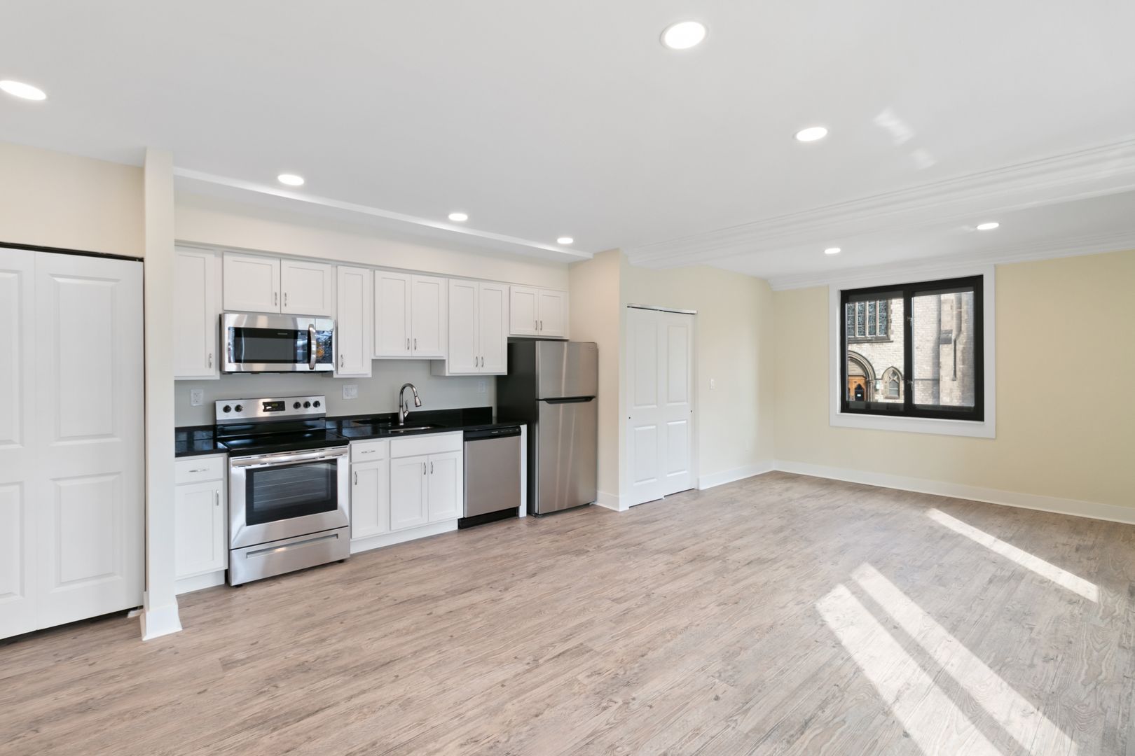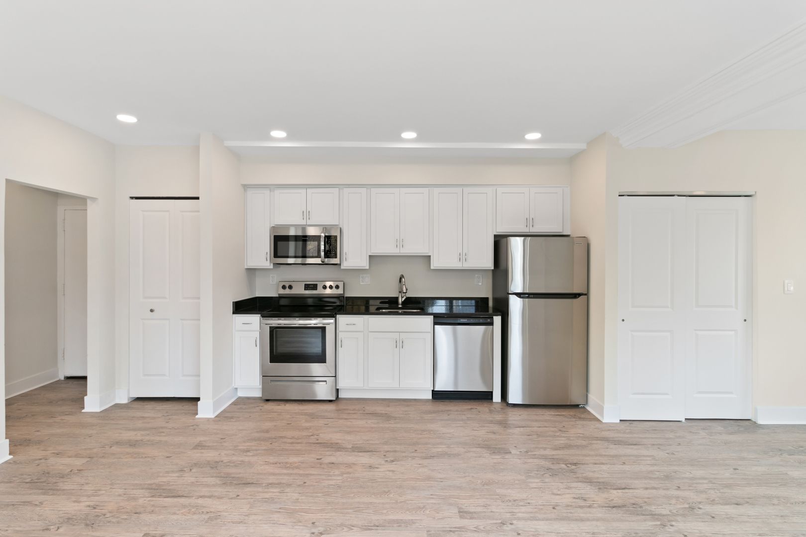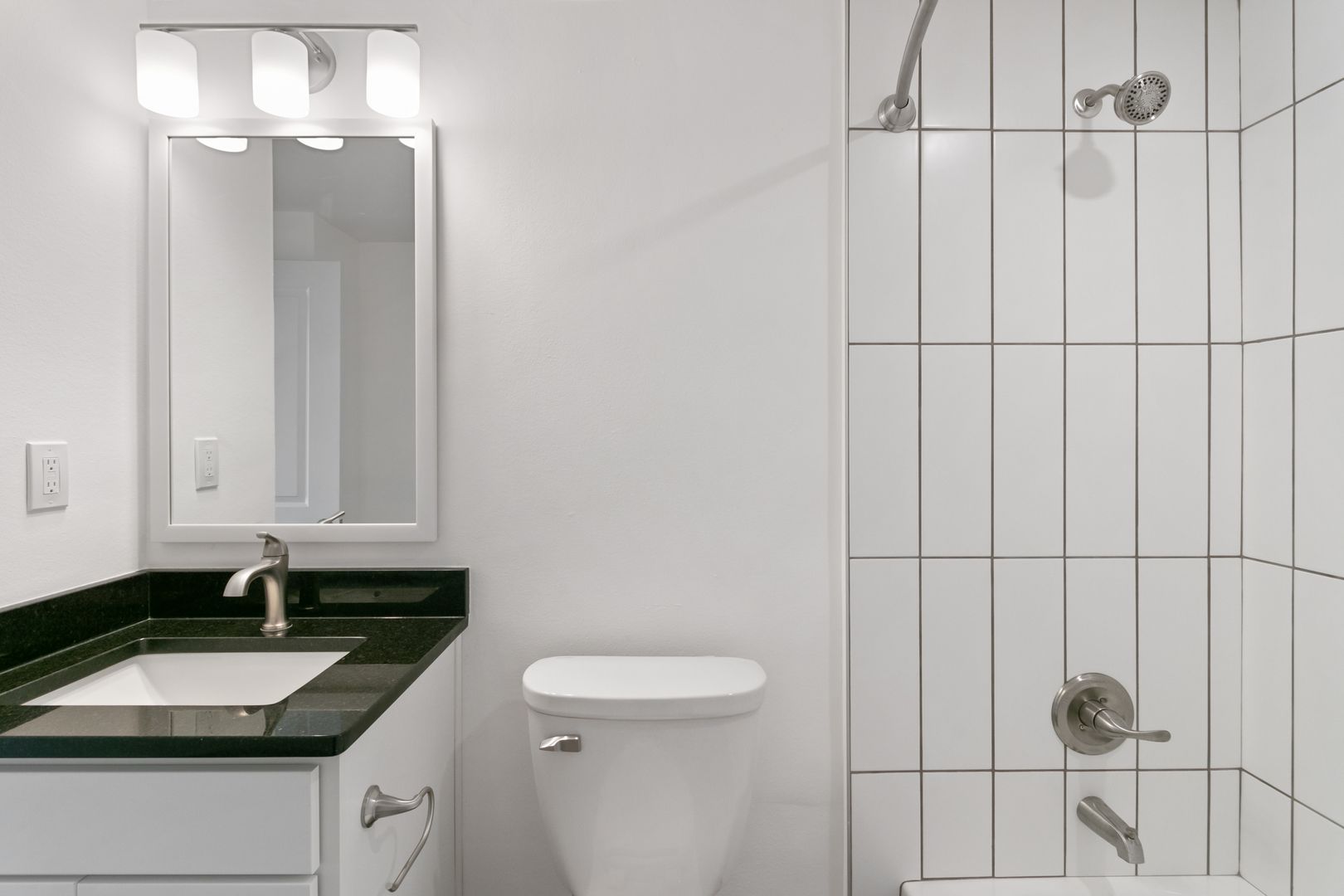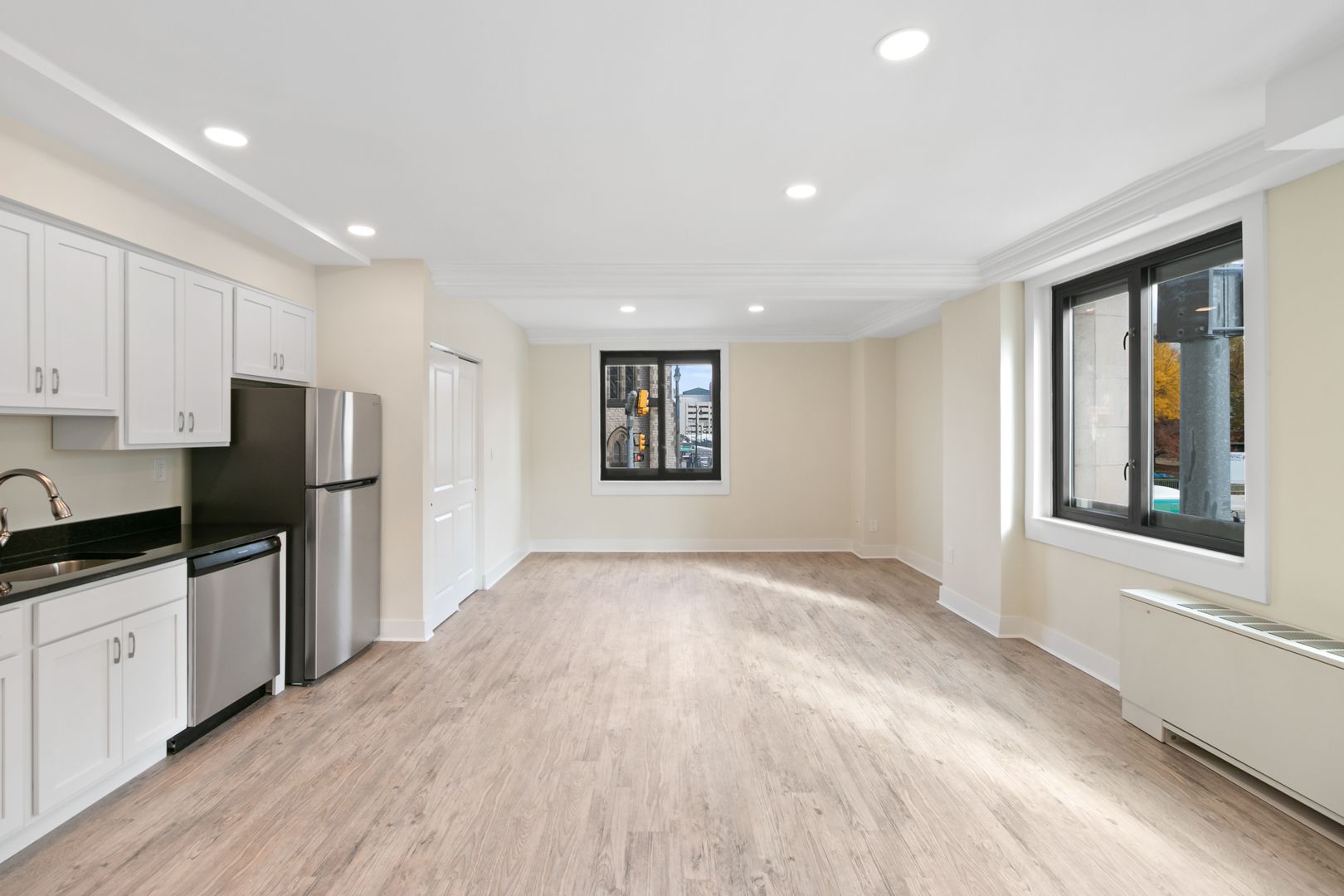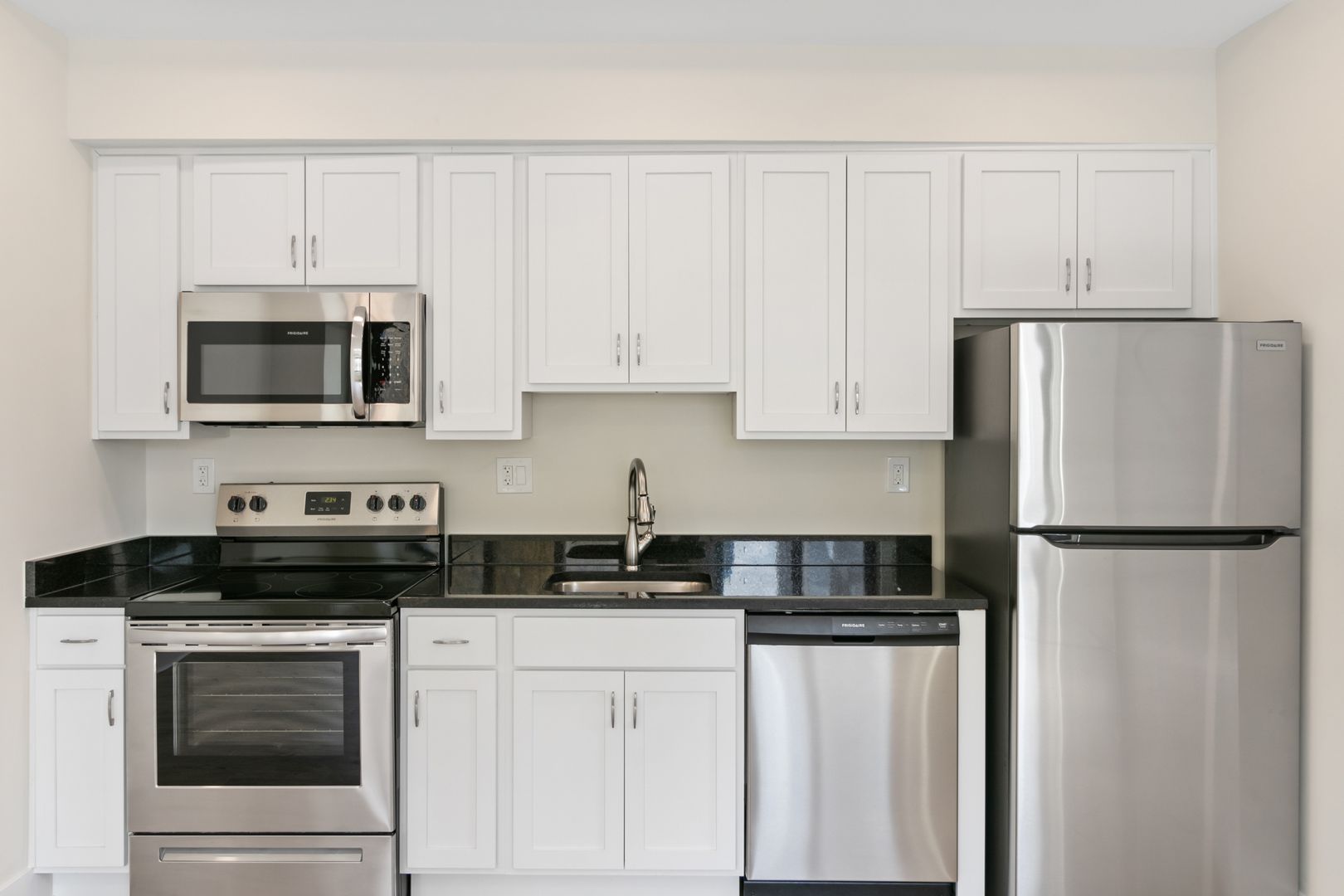 Our largest one bedroom, one bathroom apartment homes offer thoughtful floor plans and a central location. Thoughtfully appointed with granite counter tops, stainless steel appliances, goose-neck pull-out faucets, high ceilings* and designer plank flooring.